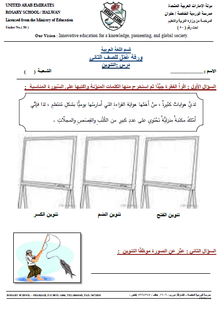 ورقة عمل حول التنوين الصف الثاني لغة عربية الفصل الأول 2017 2018 المناهج الإماراتية