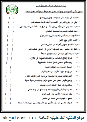 ورقة عمل نهائية في العلوم والحياة للصف الرابع الفصل الثاني المكتبة الفلسطينية الشاملة