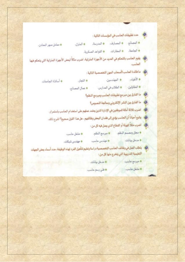 أسئلة مراجعة نظري للعملي حاسب الي الصف الأول المتوسط