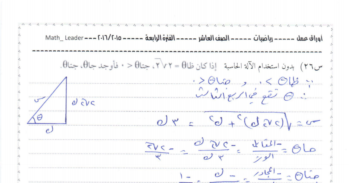الصف العاشر أوراق عمل رياضيات الفترة 4 2015 2016 مدرستي الكويتية
