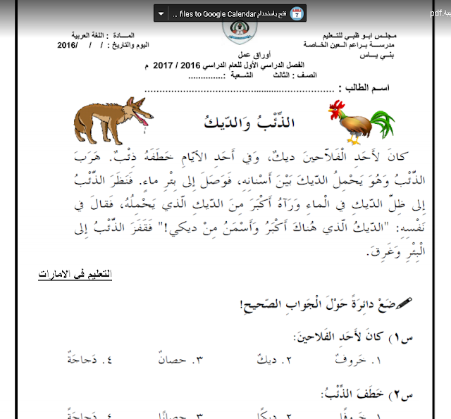 أوراق عمل مراجعة لغة عربية للصف الثالث مدرستي الامارتية