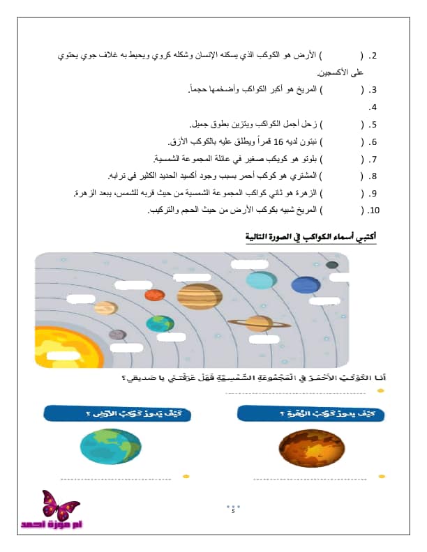 ورقة عمل شاملة للمجموعة الشمسية لعلوم رابع ف2 ملفاتي فلسطينية
