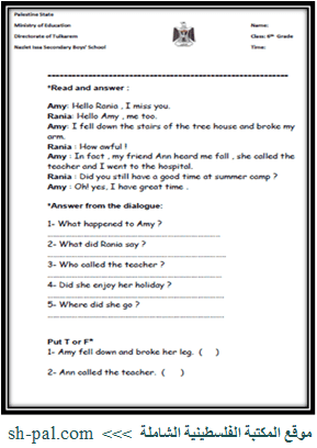 ورقة عمل في الوحدة الأولى والثانية لمادة اللغة الانجليزية للصف السادس الفصل الأول المكتبة الفلسطينية الشاملة