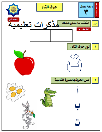 اوراق عمل لرياض الاطفال حروف الهجاء ملزمتي
