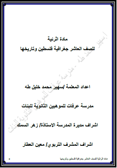 مادة إثرائية في جغرافية فلسطين للصف العاشر الفصل الأول المكتبة الفلسطينية الشاملة