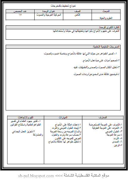 تحضير الوحدة الثانية الحركة الموجية والصوت للصف الثامن الفصل الثاني المكتبة الفلسطينية الشاملة