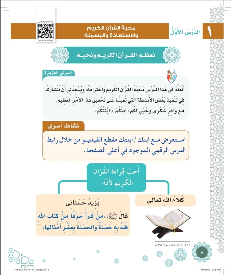 أوراق عمل في مادة التربية الإسلامية للصف الأول الفصل الأول 2020 مذكرة دوت كوم