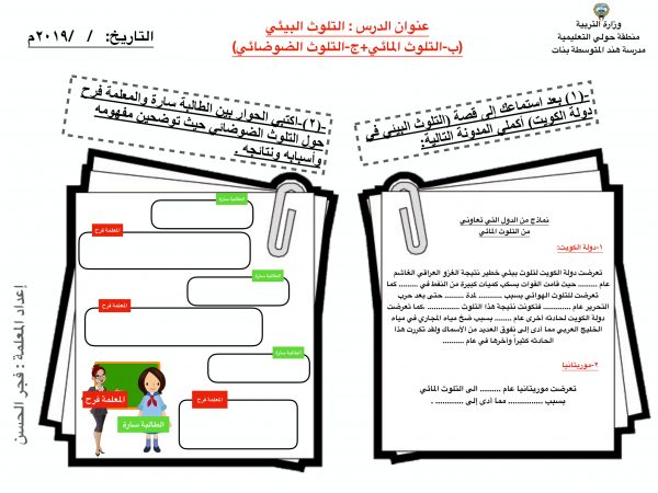 أوراق عمل درس التلوث أول متوسط