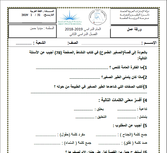 أوراق عمل درس الطموح