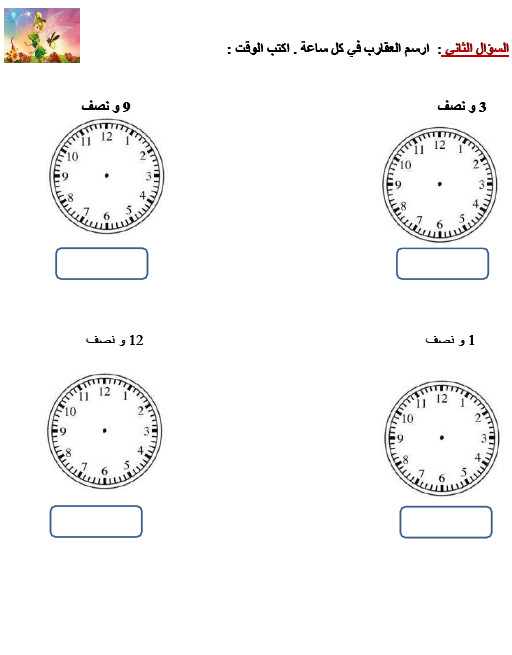 ورقة عمل الوقت للصف الثاني مدرسة المأمون الإبتدائية بنين