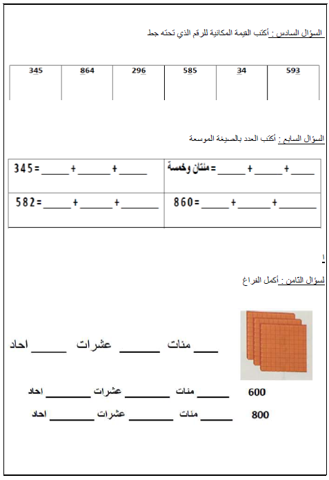 اوراق عمل رياضيات كتابة وقراءة الاعداد للصف الثاني الفصل الدراسي الثاني 2021 2021