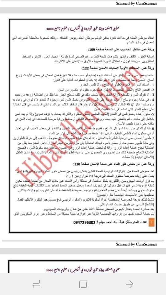 جميع اوراق عمل في علم الاحياء للصف التاسع