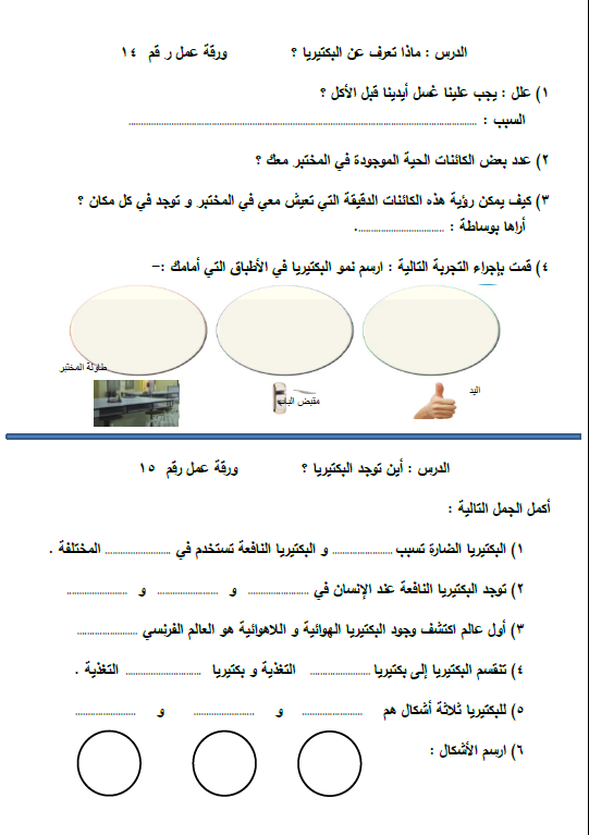 اوراق عمل علوم ثالث ابتدائي الفصل الاول 1439