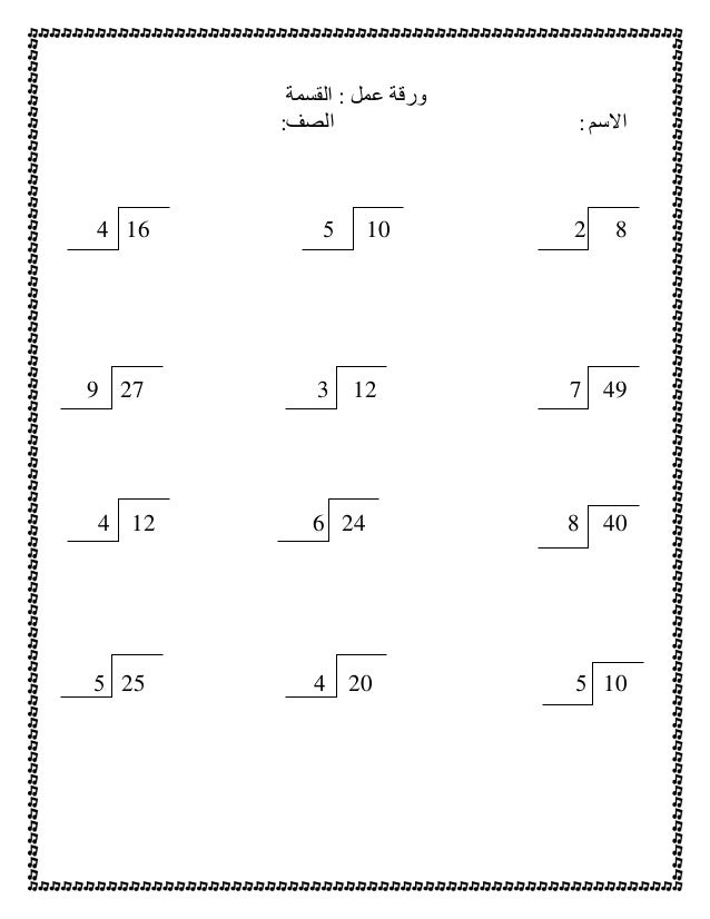 أوراق عمل على القسمة المطولة
