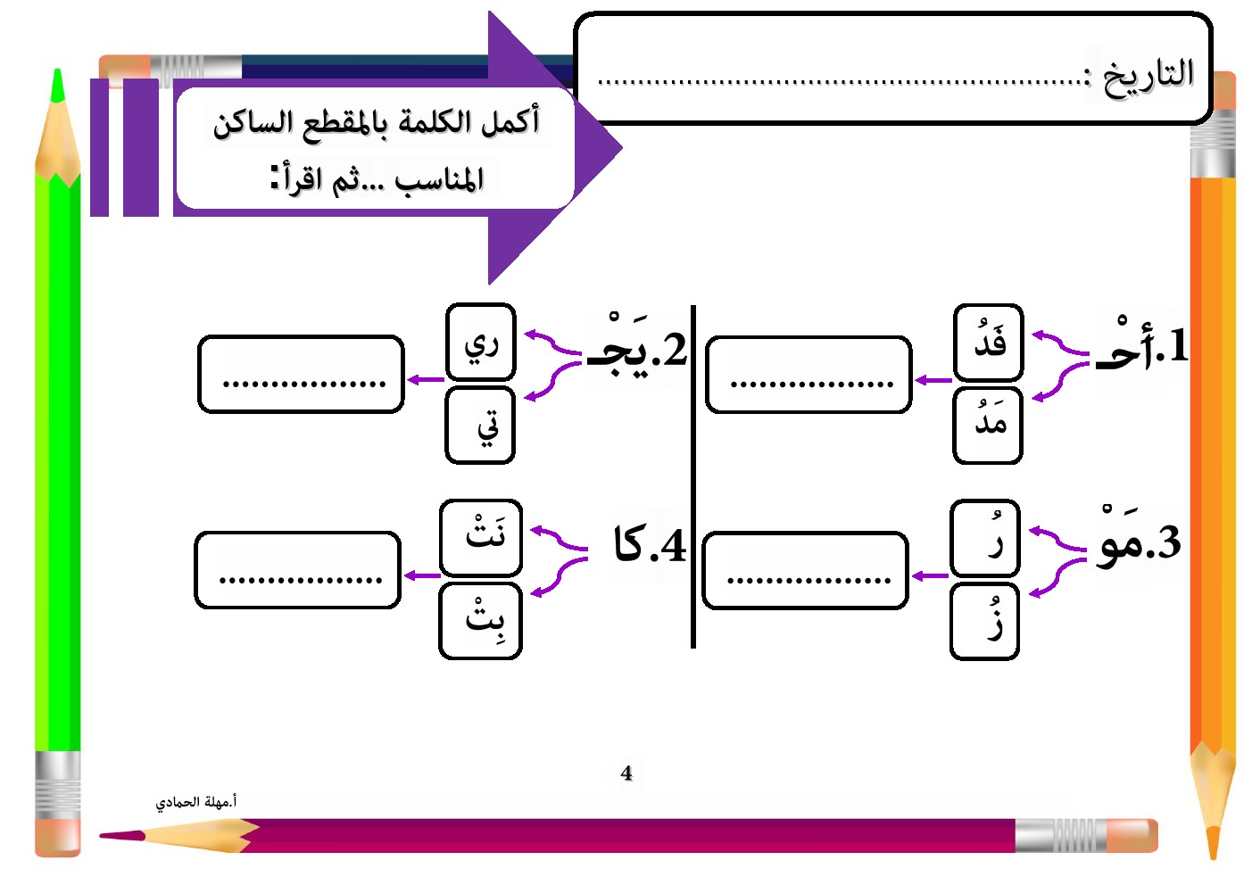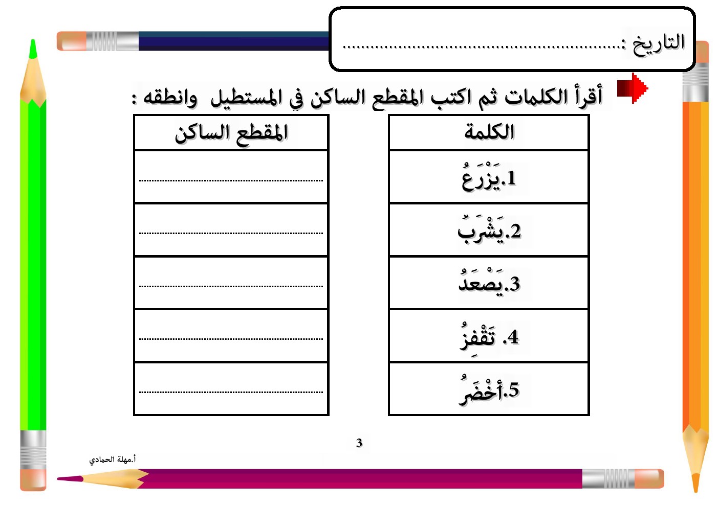 ورقة عمل المقطع الساكن لغة عربية للصف الأول مدرستي الكويتية