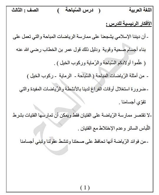 بالصور شرح درس السباحة مع معاني الكلمات والأضداد والاستخراج لمادة الغة العربية الصف الثالث الفصل الأول منتديات صقر الجنوب