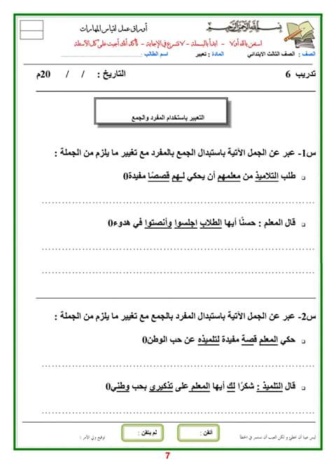 أوراق عمل في التعبير الكتابي للسنة الثالثة و الرابعة