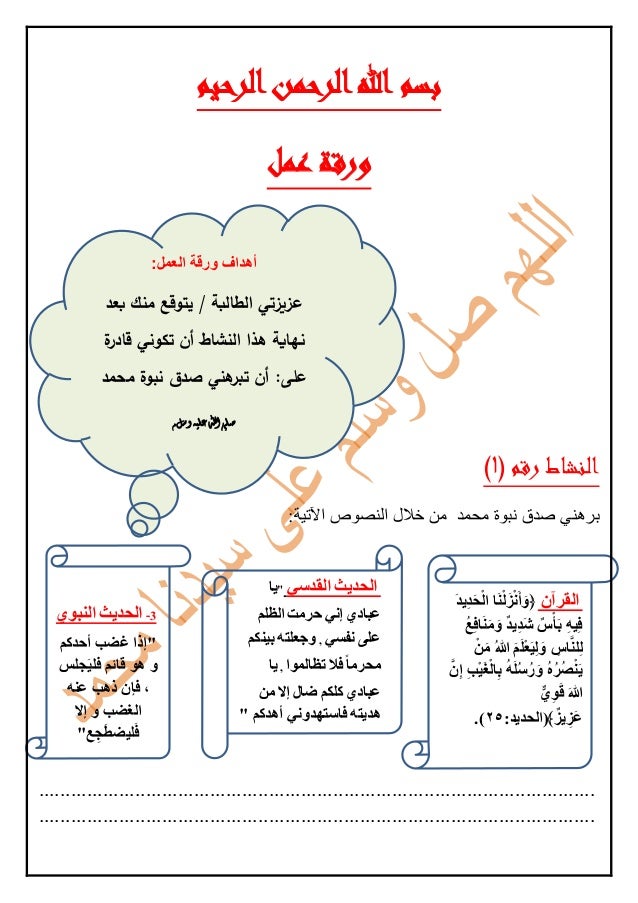 ورقة عمل على اثبات نبوة محمد نسخة