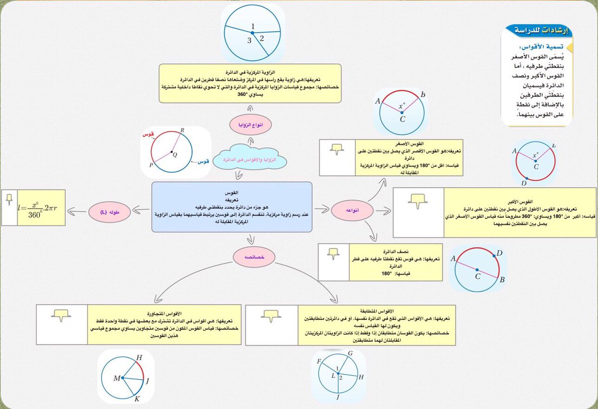 تحضير الوزارة درس قياس الزوايا والأقواس الأقواس والأوتار مادة الرياضيات 2 مقررات لعام 1441 هـ