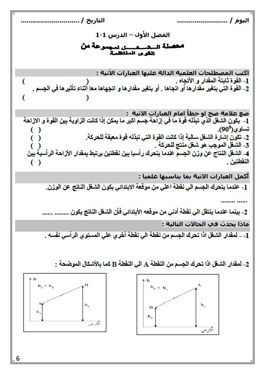 ورقة عمل على درس القوى والطاقة الصف السادس علوم الفصل الثاني المناهج العمانية