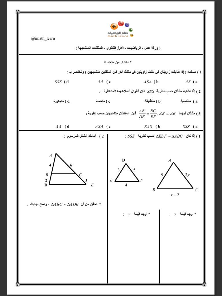 تعلم الرياضيات On Twitter أوراق عمل ومراجعات الأول الثانوي فصل التشابه Https T Co N9mxfau5te