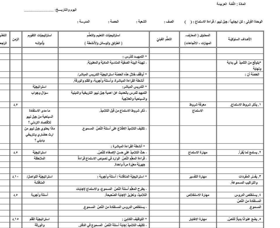 نموذج Word تحضير الوحدة الأولى كن إيجابي ا لمادة اللغة العربية للصف الثامن الفصل الأول منتديات صقر الجنوب