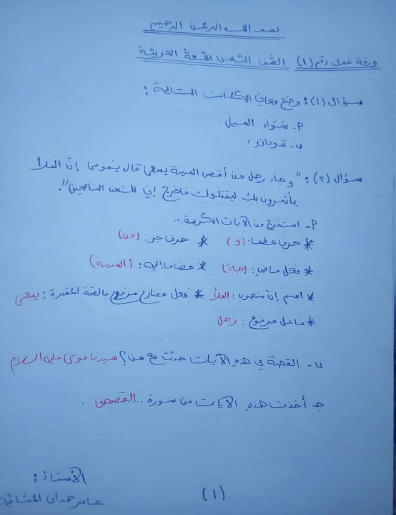 مجموعة أوراق عمل الوحدة الأولى لمادة اللغة العربية للصف الثامن الفصل الاول منتديات صقر الجنوب