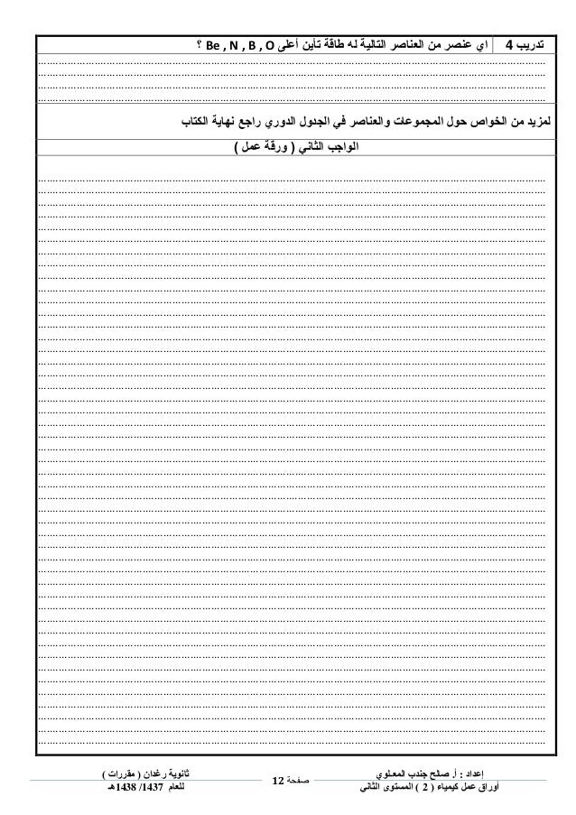 اوراق عمل كيمياء 3 ثاني ثانوي المستوى الثالث الفصل الاول والثاني 1440 Pdf حل التعليمي