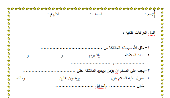 أوراق عمل في مادة الـتربية الـاسلامية للصف الـثاني العلوم والتكنولوجيا