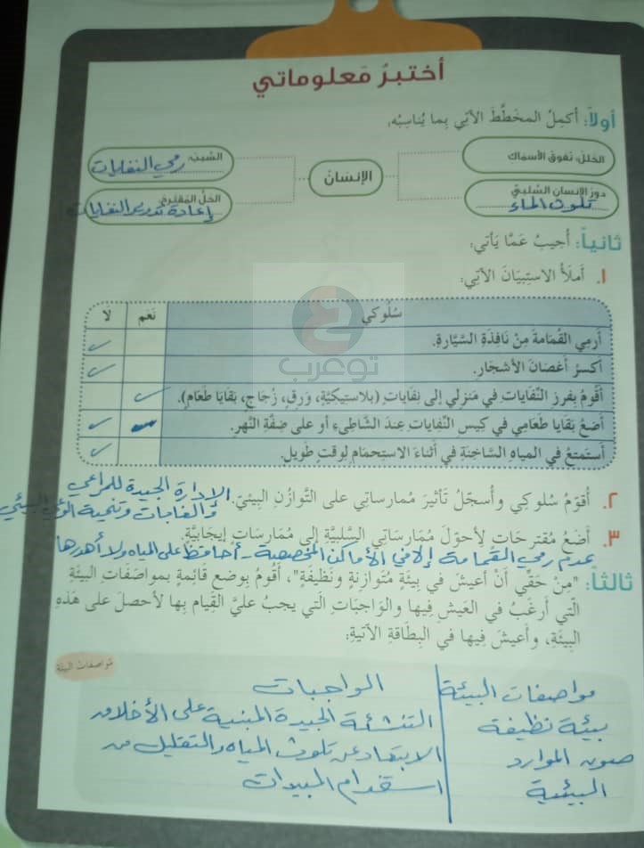 أوراق عمل لدرس تأثير الانسان في الماء علوم اول متوسط