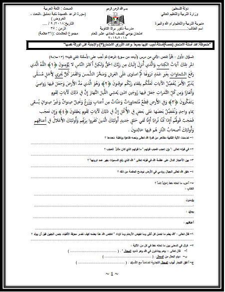 شرح رائع جدا لدرس سورة إبراهيم مع أسئلة شاملة ومحلولة للغة العربية عاشر ملتقى تعليم فلسطين