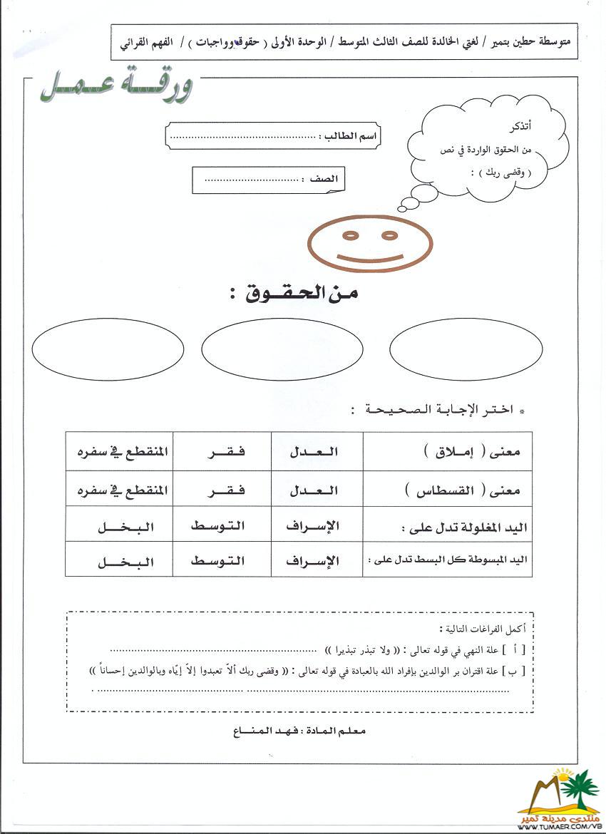اوراق عمل لغتي ثالث متوسط الفصل الاول والثاني 1441 مدونة المناهج السعودية