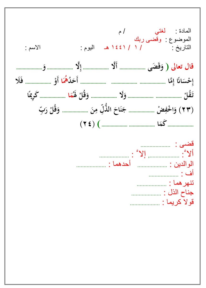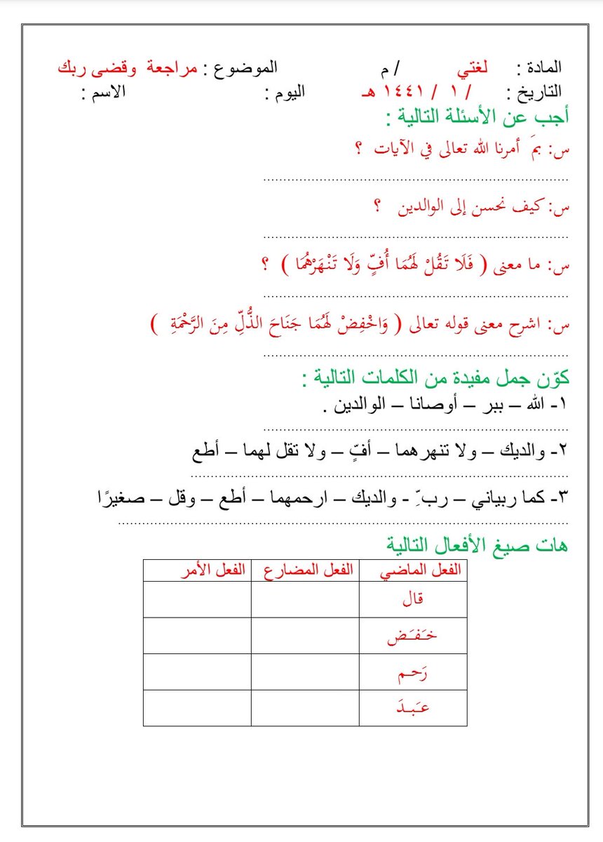 O Xrhsths بندر الصقعوب Sto Twitter أوراق عمل مبسطة لدرس وقضى ربك من وحدة حقوق وواجبات من مادة لغتي الصف الثالث متوسط لطلاب العوق السمعي تعليم الصم لعلكم تجدون فيها فائدة Https T Co Ac5qtpzhgx