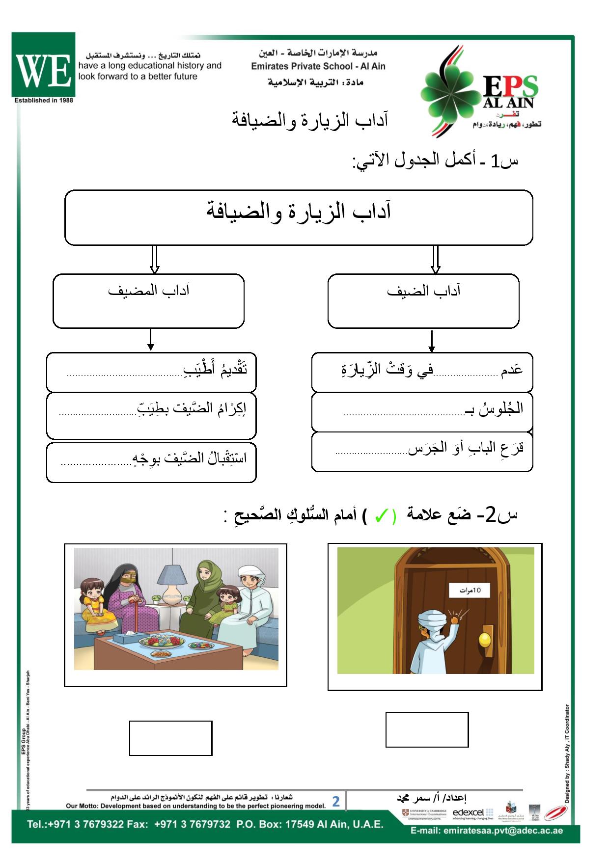 مجموعة أوراق عمل في مادة التربية الاسلامية للصف الثاني الفصل الثالث منتديات صقر الجنوب