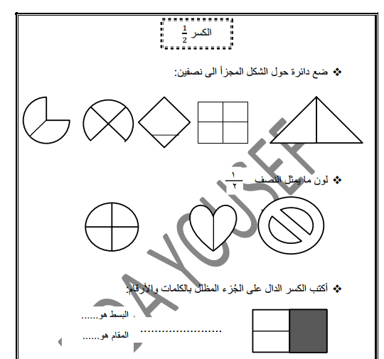 ورقة عمل رائعة للكسر نصف وثلث وربع لمبحث الرياضيات ثاني الفصل الثاني ملتقى تعليم فلسطين