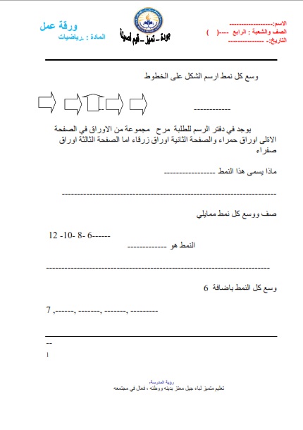 أوراق عمل في الرياضيات للصف الرابع الفصل الثاني المكتبة الفلسطينية الشاملة