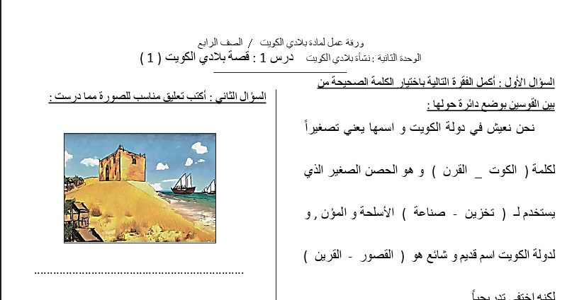 اوراق عمل اجتماعيات الصف الخامس وحدة نشأة بلادي الكويت 2019 2020 مدرستي الكويتية