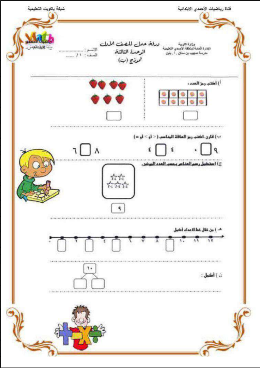 أوراق عمل رياضيات للصف الأول الإبتدائي منتديات صقر الجنوب Facebook