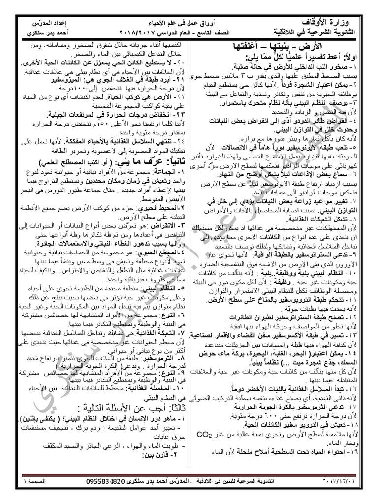 قومية اوراق عمل لكل وحده بكالوريا علمي 2020 Facebook