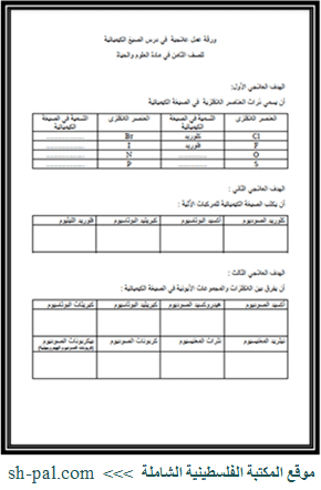 ورقة عمل علاجية في درس الصيغ الكيميائية للصف الثامن الفصل الثاني المكتبة الفلسطينية الشاملة