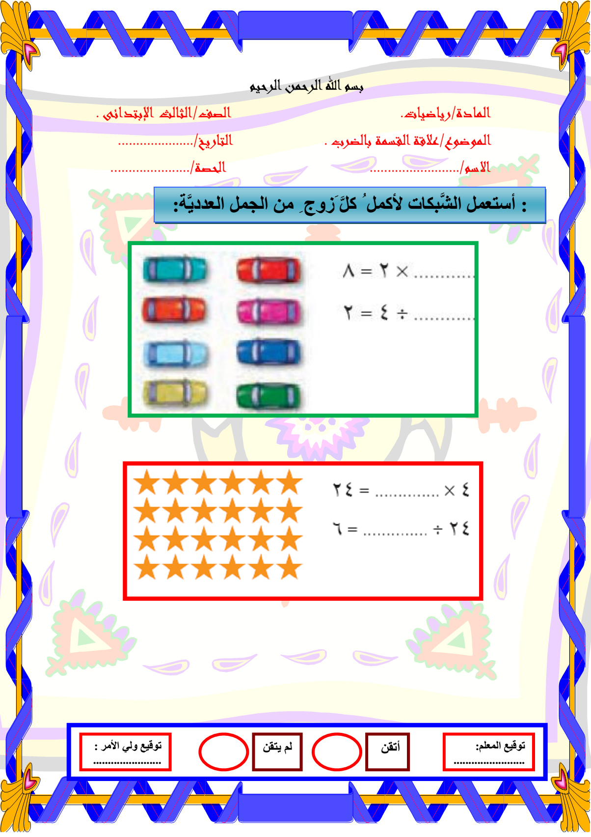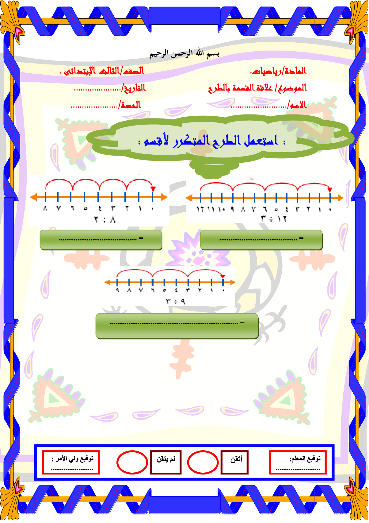 أوراق عمل للرياضيات لثالث ابندائي الفصل الدراسي الثاني