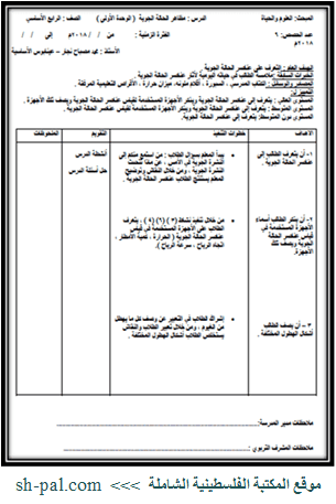 تحضير في العلوم والحياة للصف الرابع الفصل الثاني المكتبة الفلسطينية الشاملة