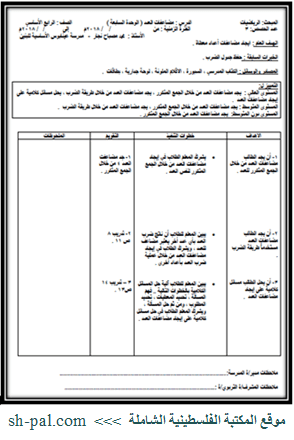 تحضير رياضيات للصف الرابع الفصل الثاني المكتبة الفلسطينية الشاملة