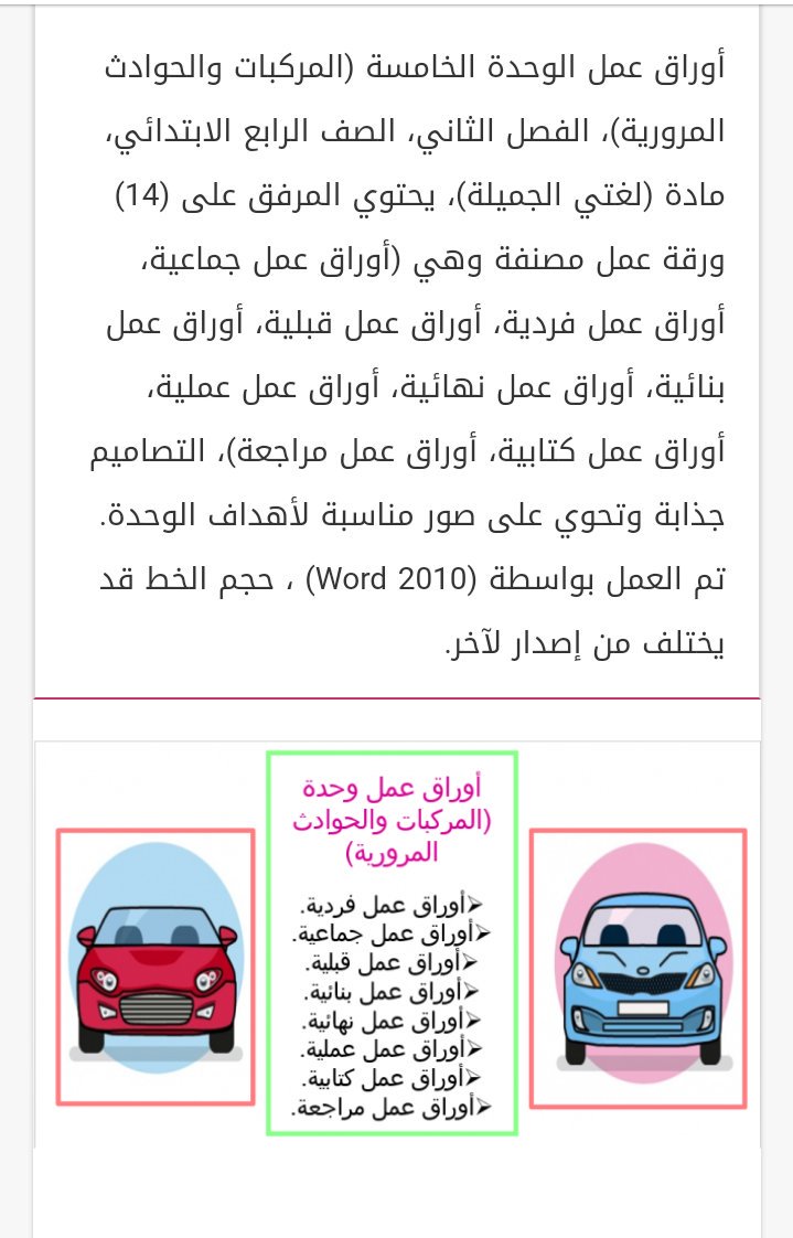 الرابع الابتدائي الفصل الدراسي الثاني لغتي مدخل الوحدة الخامسة المركبات والحوادث المرورية Youtube