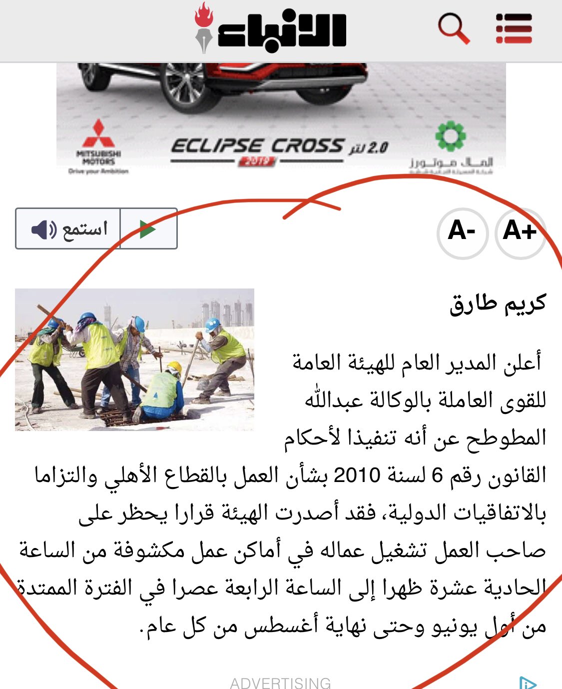 نايف فرحان العبهول A Twitter أولا هناك قانون لحظر العمل تحت أشعة الشمس مباشرة في فصل الصيف كما هو موضح لازم يفعل وتحاسب الشركات على تشغيل عمالتها في أوقات الحظر ثانيا إيقاف توصيل الطلبات