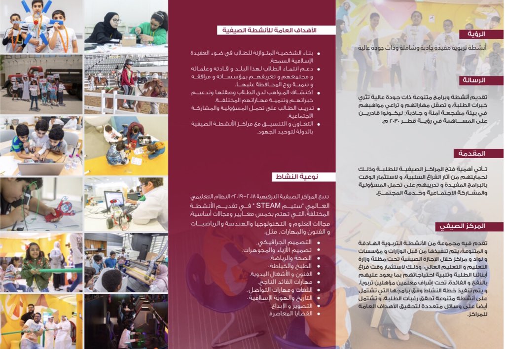 الراية القطرية در توییتر وزارة التعليم تحث الطلاب والطالبات إلى الالتحاق بالمراكز الصيفية والاستمتاع بالأنشطة الترفيهية والتثقيفية والرياضية والمشاركات المجتمعية المختلفة بنشاطي ارتقي جريدة الراية القطرية قطر Https T Co Mvgerkgmms