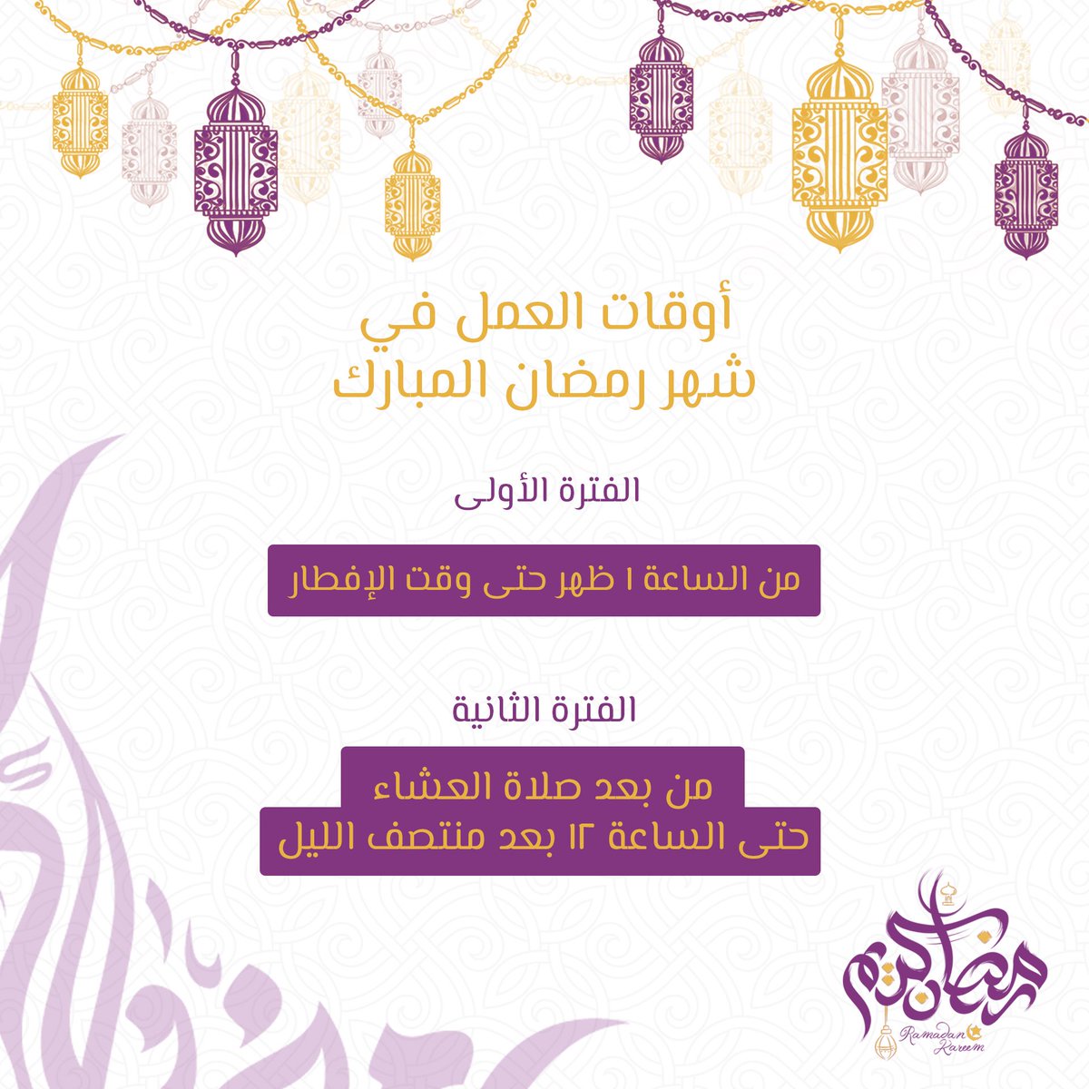 Working Hours During The Holy Month Of Ramadan أوقات العمل خلال الشهر الفضيل
