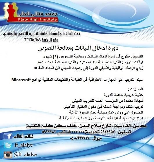 معهد فتاتي للتدريب On Twitter مفتوح باب التسجيل في دورة ادخال البيانات و معالجة النصوصيوجد العديد من المميزات للدورة Http T Co Q66sc0s1oz
